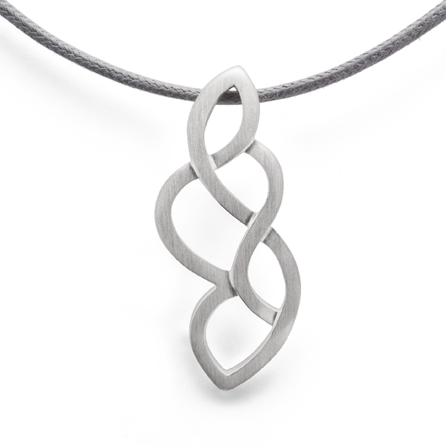 Der länglich gearbeitete, organisch geformte Anhänger aus der Feder der Designerin Sabine Brandenburg-Frank vermag jeden Ausschnitt perfekt zur Geltung zu bringen. Die an Blätter erinnernde Designsprache verleiht diesem sportlich-eleganten Schmuckstück aus mattiertem Sterlingsilber eine federleichte Ausstrahlung. Mit passendem Ring und Armreif erhältlich.
