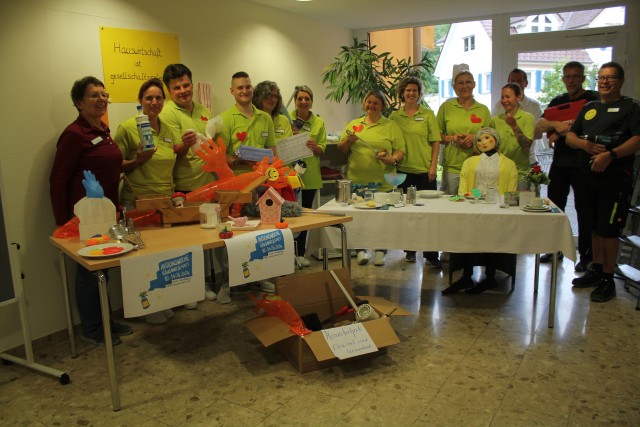 Die langjährige Hauswirtschaftsleitung Fr. Susanne Bertsch wurde mit diesem Fest von den Bewohnerinnen und Bewohnern verabschiedet. Sie zieht sich aus dem aktiven Arbeitsleben im Seniorenzentrum zurück. Sie kann sich dann mehr Zeit für sich und die Familie in nehmen. Sie überraschte die Anwesenden mit einem Abschiedsgeschenk der besonderen Art, nämlich mit 6 Kissen für die Schwarzwald-Strandkörbe.
