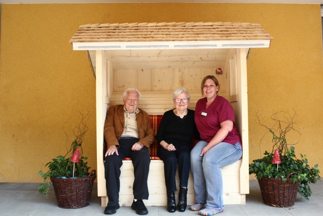 Wir freuen uns, dass wir für die Tagespflege wieder eine neue und attraktive Sitzmöglichkeit im Außenbereich haben, die unsere Gäste zu einem gemütlichen Plausch an der frischen Luft einlädt.