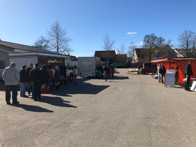 Die Metzgerei Zuckschwerdt aus Fluorn bietet Fleisch- und Wurstwaren, Herr Setzkorn aus Balingen Obst und Gemüse, Frau Soldner aus Reutin eigene Eier und Teigwaren sowie Herr El Kontar aus Fluorn mediterrane Spezialitäten und Käse an.
